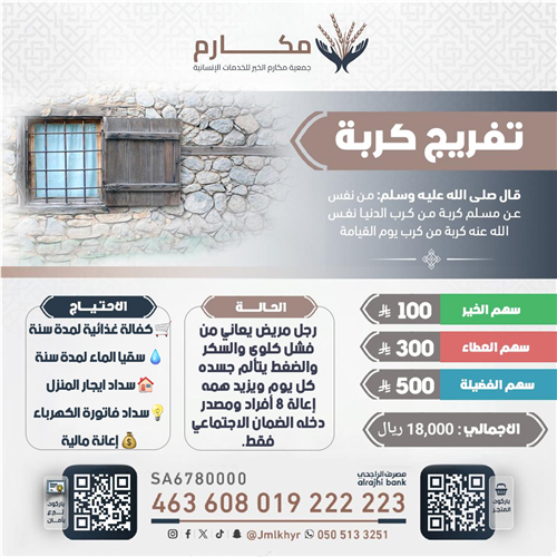 🛑 وهو من أهل الزكاة وما تقدموه له ولأسرته سيكون سببًا في تخفيف مرضه ورسم البسمة على وجوه أطفاله. 🥹